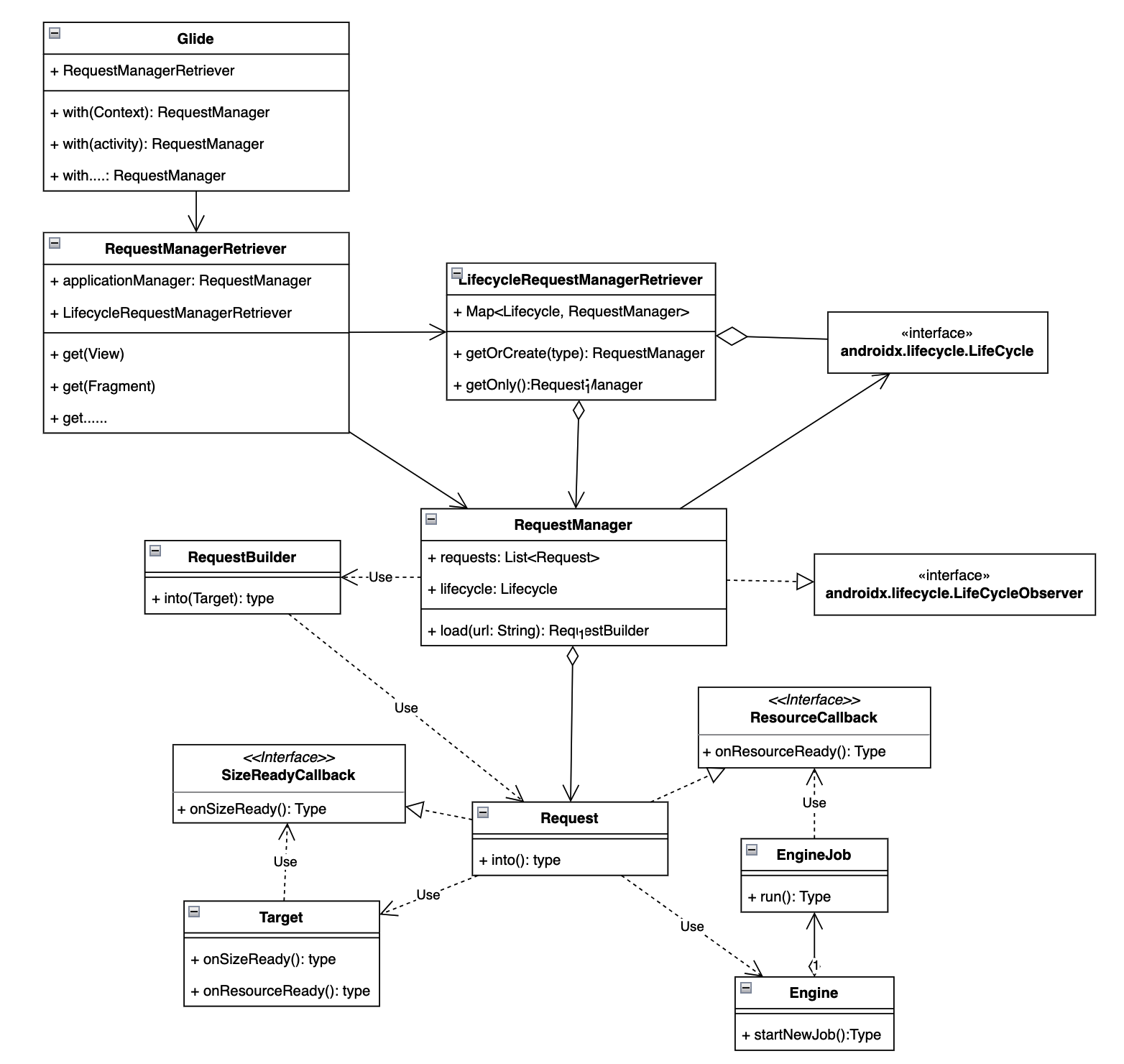 注意 Glide 和 RequestManager 之间变成了聚合的关系