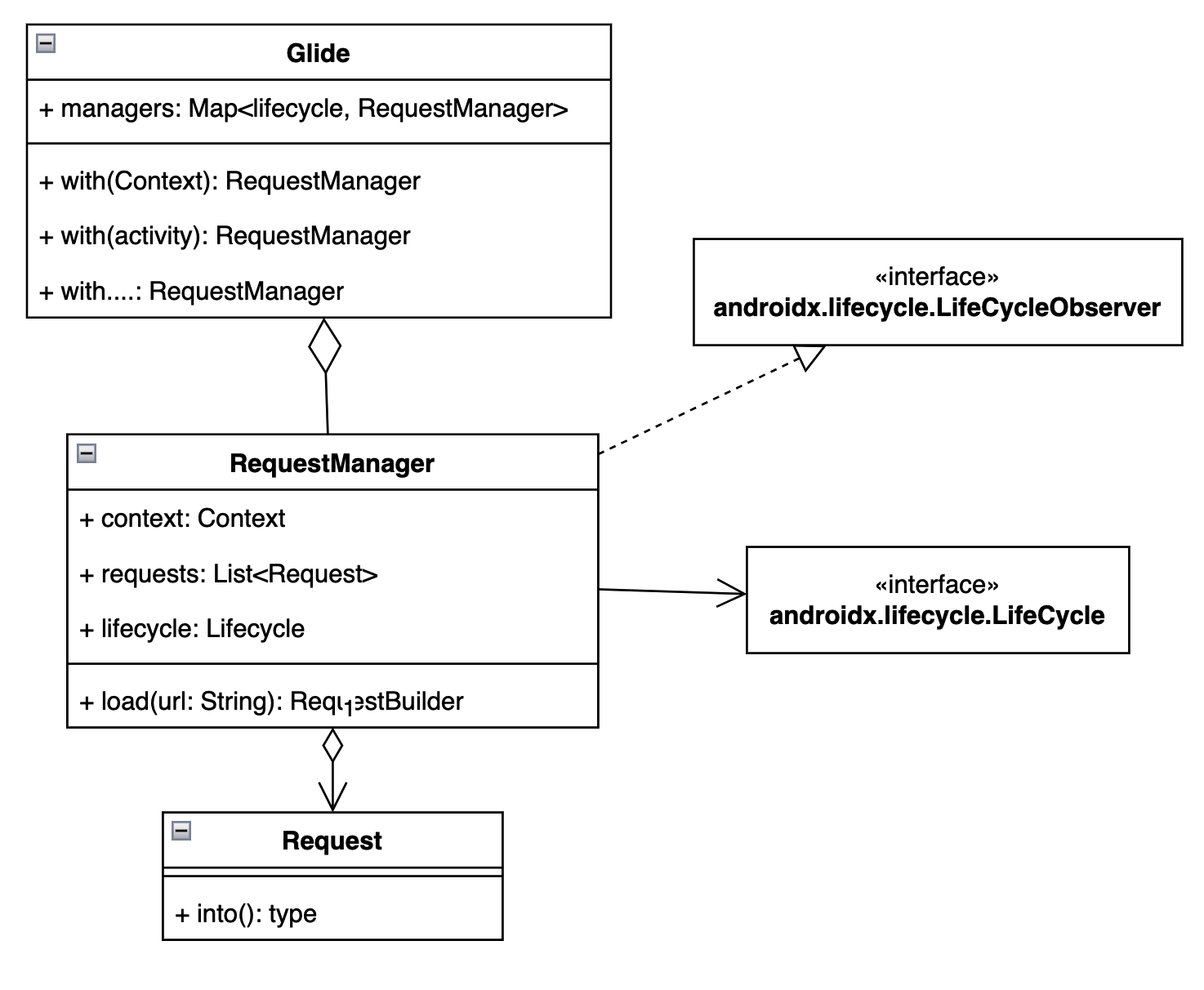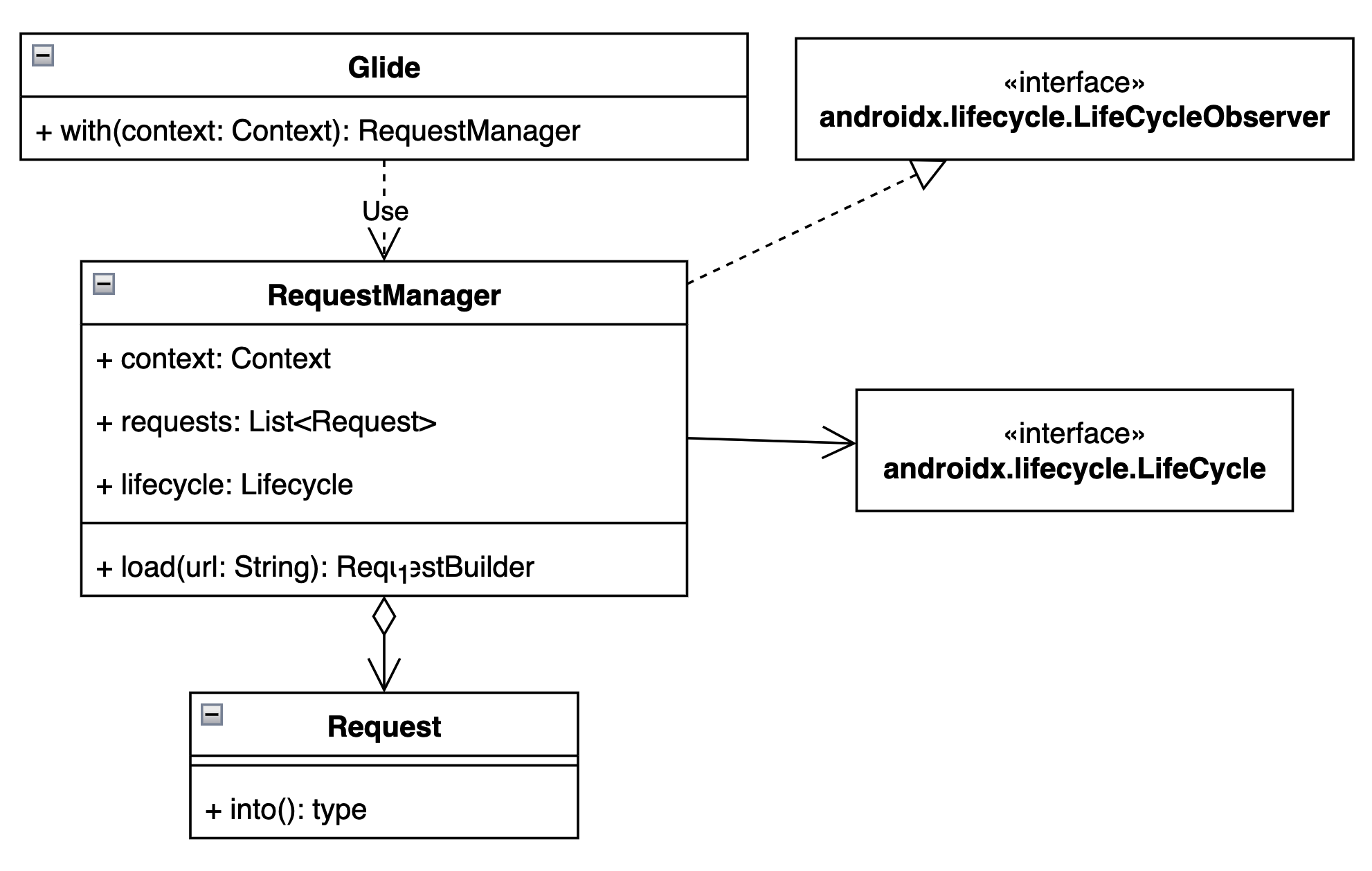 我们需要让 RequestManager 来感知到 Lifecycle 的状态变化,从而实现 Request 的自动启动和停止,达到智能释放引用的目标。